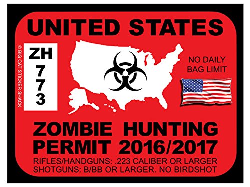 Design rich colors to choose fromShop for Exterior Accessories products with confidence at AutoZone.com. Parts are just part of ... Videos for car repairs, auto parts and products. See Details. This pallet flag provides a twist on the usual flag design by replacing the blue field of stars with a cutout map of the United States with a string art star! Perfect for the 4th of July, this pallet flag will bring flea market style to your patriotic celebration!.United States Zombie Hunting Permit (Bumper Sticker) will help your job easier dexGet the ORIGINAL Zombie Hunting Permit from Big Cat Sticker Shack. There have been companies copying our design and we can't guarantee the quality of their stickers. Big Cat Sticker Shack is the ONLY manufacturer of this original design. 2014/2015 United States Zombie Hunting permit. This vinyl bumper sticker/decal is printed with UV resistant inks and digitally cut on weather resistant PVC Vinyl. Big Cat Sticker Shack specializes in high quality bumper stickers. Our stickers are printed on PVC Vinyl, the same kind sign shops use for vehicle wraps and vehicle signs. That means they are made to withstand the weather. We print them with a state of the art printer using UV resistant inks and cut them with a digital vinyl cutter. The end result is tough, weather resistant bumper stickers with photo quality images that will not fade for years!