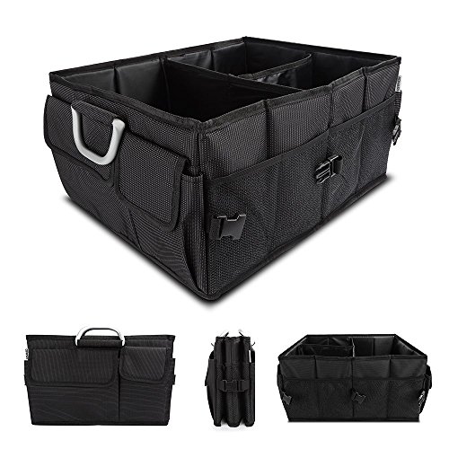 Aomaso Auto Trunk Organizer Nylon Foldable Design Aluminum For Car, SUV, Minivan, Truck, Durable Collapsible Cargo Storage,Black