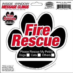 Animal Fire Rescue Paw Inside Static Cling