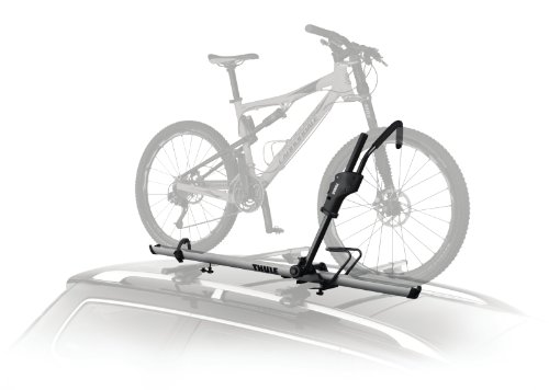 The Thule Sidearm Rooftop Upright Bike Carrier provides a solid, easy to use and secure bike transport system that ensures maximum bike and car protection as all its components make contact with wheel only. The sidearm carrier is designed for individual bikes with 20-29 inch wheels and tire widths up to 2.6 inches wide. To secure a bike it utilizes the combination of a rugged wheel tray which snugly holds the tires of both wheels, a wheel strap to secure the rear wheel to the tray and a combination of a locking ratchet arm with patented SecureHook technology and a wheel loop that the front tire braces against. To use, position the ratchet arm and hook assembly in a forward and fully extended position, then lift the bike up and into the wheel tray, ensuring that the front wheel precedes the wheel loop. Next, with one hand holding the bike stable, use your other hand to rotate the support arm of the SecureHook to just above the tire and ratchet the arm tightly against the wheel. You should hear a a few clicks past initial contact with the tire that lets you know that your bike is clamped down good and tight. Lastly, cinch down the back tire to the wheel tray using the wheel strap. That's all there is to it. The Thule Sidearm also can secure your bike to the carrier and carrier to the rack with two locks (sold separately).