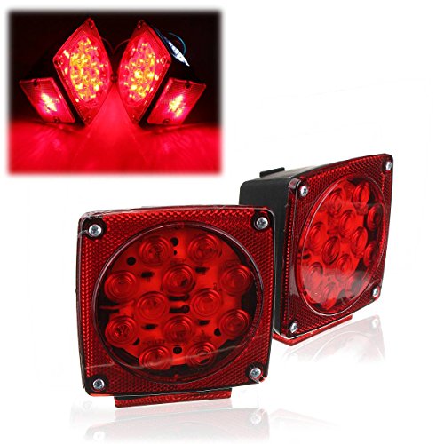 AUDEW Pair Square LED Tail Brake Light Side Marker Boat Trailer